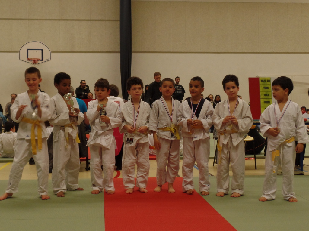 Les Pré poussins nés en 2010 et 2009 : 21 de nos judoka allaient entrer en compétition et cela sur 5 combats : Citons le sans faute de Gianni, Maya et Noam et d’une équipe soudée et soutenue avec ferveur par leur famille venue parfois au grand complet.
