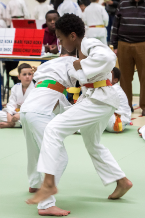 Les Puces nés en 2011 et 2012 : 11 de nos judoka allaient entrer en compétition et cela sur un minimum de 4 combats : Citons le sans faute de Syphax ou d’Ismaël et une très jeunes équipe motivée et disciplinée dans son ensemble.