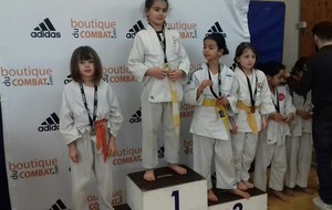 Notre équipe de 6 poussins/poussines commence la compétition. Malgré un beau parcours, nos judokas trouvent souvent une très forte opposition en finale mais les résultats sont très honorables : Maya en or - Djena - Esther – Ismaël - Léa et Raphael en argent. Mention spéciale pour la détermination de nos féminines comme elles le montrent régulièrement compétitions après compétitions.